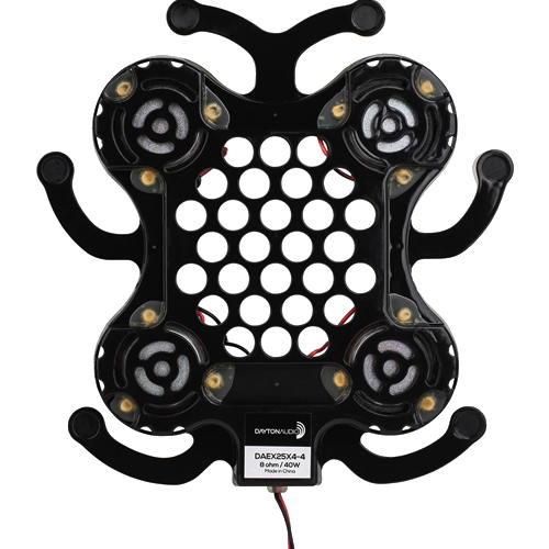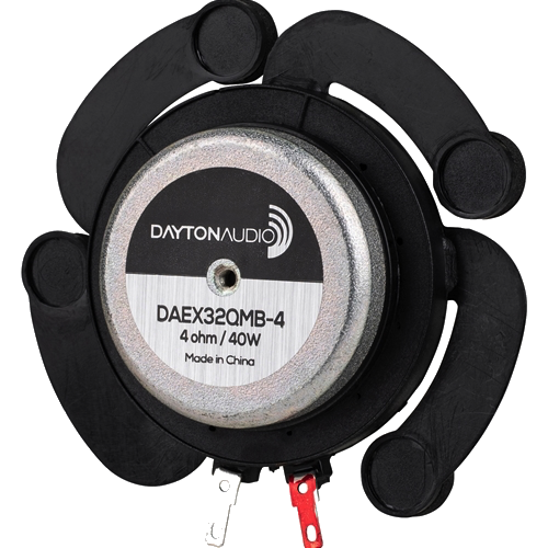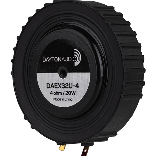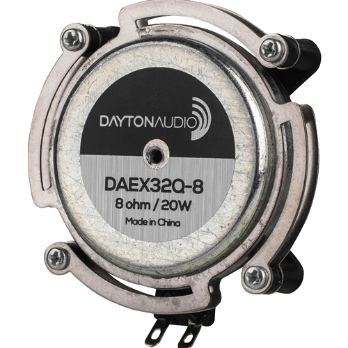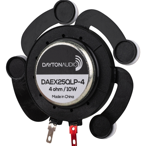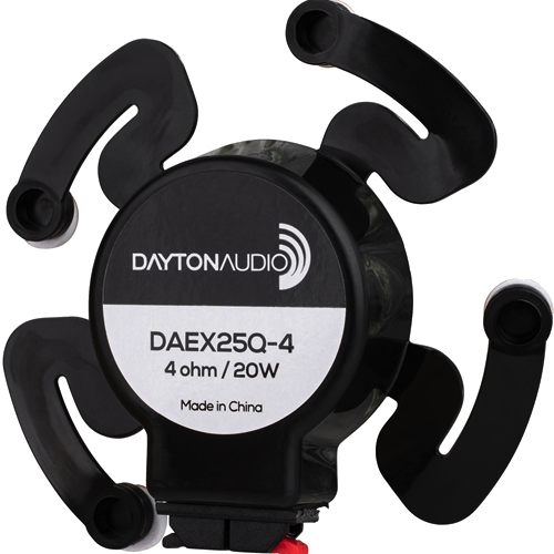 Dayton Audio exciters are compact devices that attach to surfaces and vibrate them mechanically. The vibrations translate into auditory information; the result is surprisingly musical and accurate. Try a few on doors, ceiling panels, windows, projection screens—whatever excites you!
